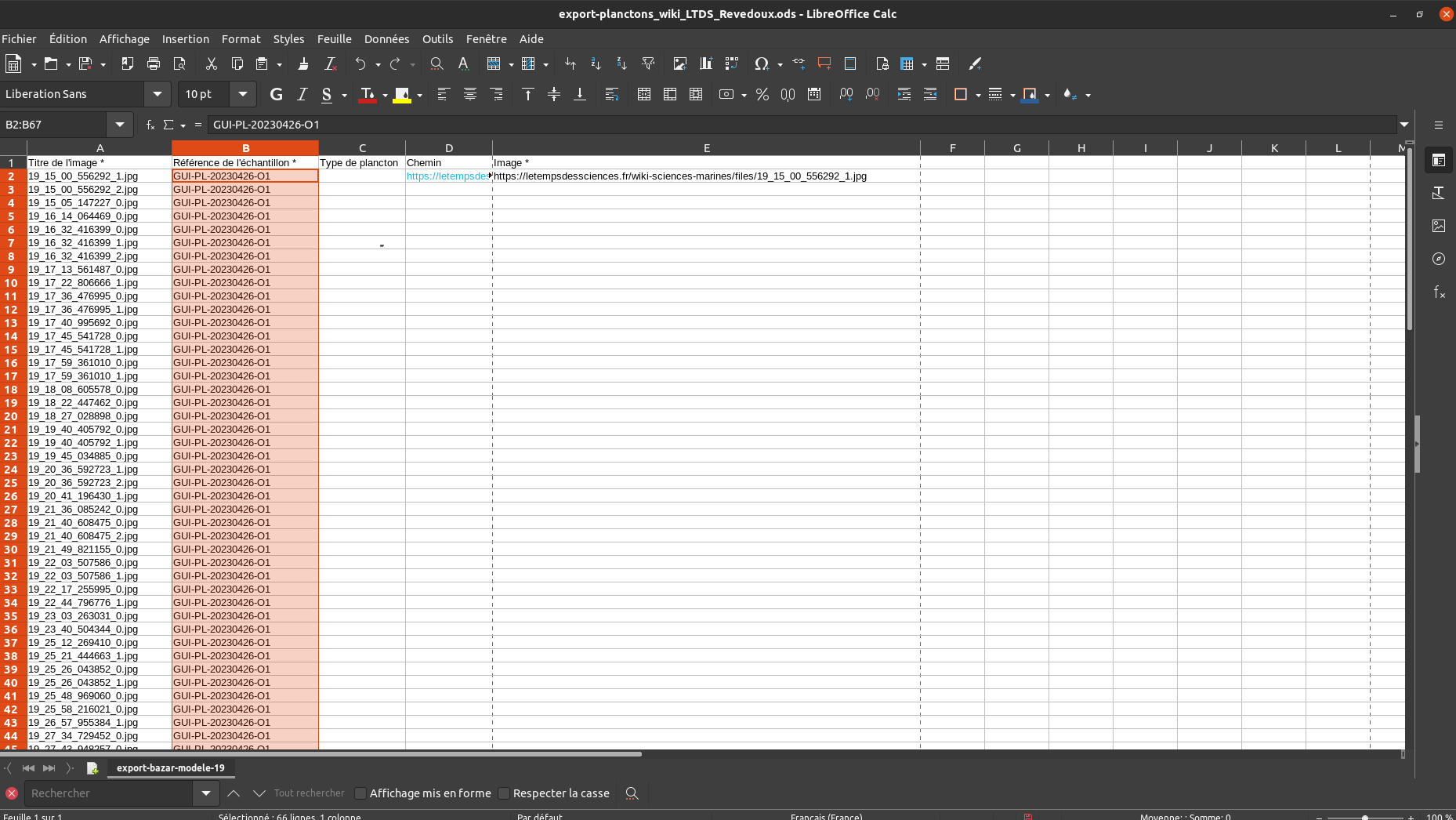 Ce fichier listera tous les sous-echantillons d'un prélèvement de plancton (vignettes). Par conséquent, il devra être placé dans le dossier au chemin :Ref_echantillon/refechantillon.csv et être renommé avec la référence unique de l'échantillon avec l'extension ".csv".