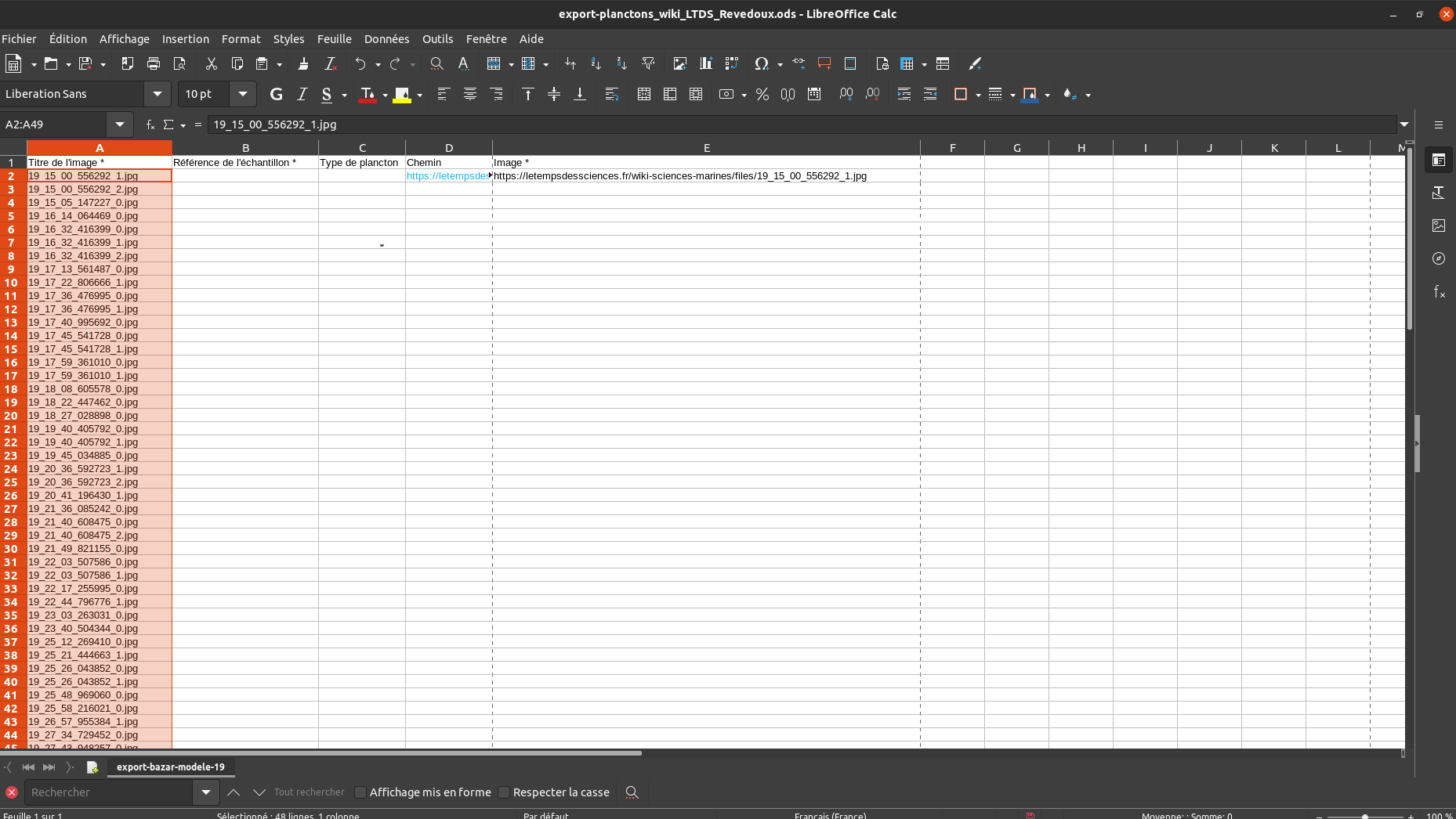 - La colonne E (Image) contient un calcul qui concatène simplement le nom du fichier au chemin. Il conviendra de l'étirer aussi à toutes les lignes.