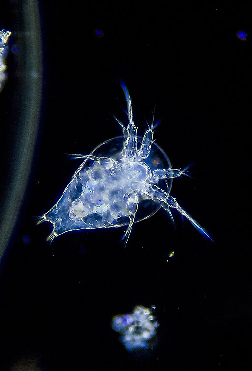 L'image ci-dessous présente une larve de copépode (petit crustacé du plancton).